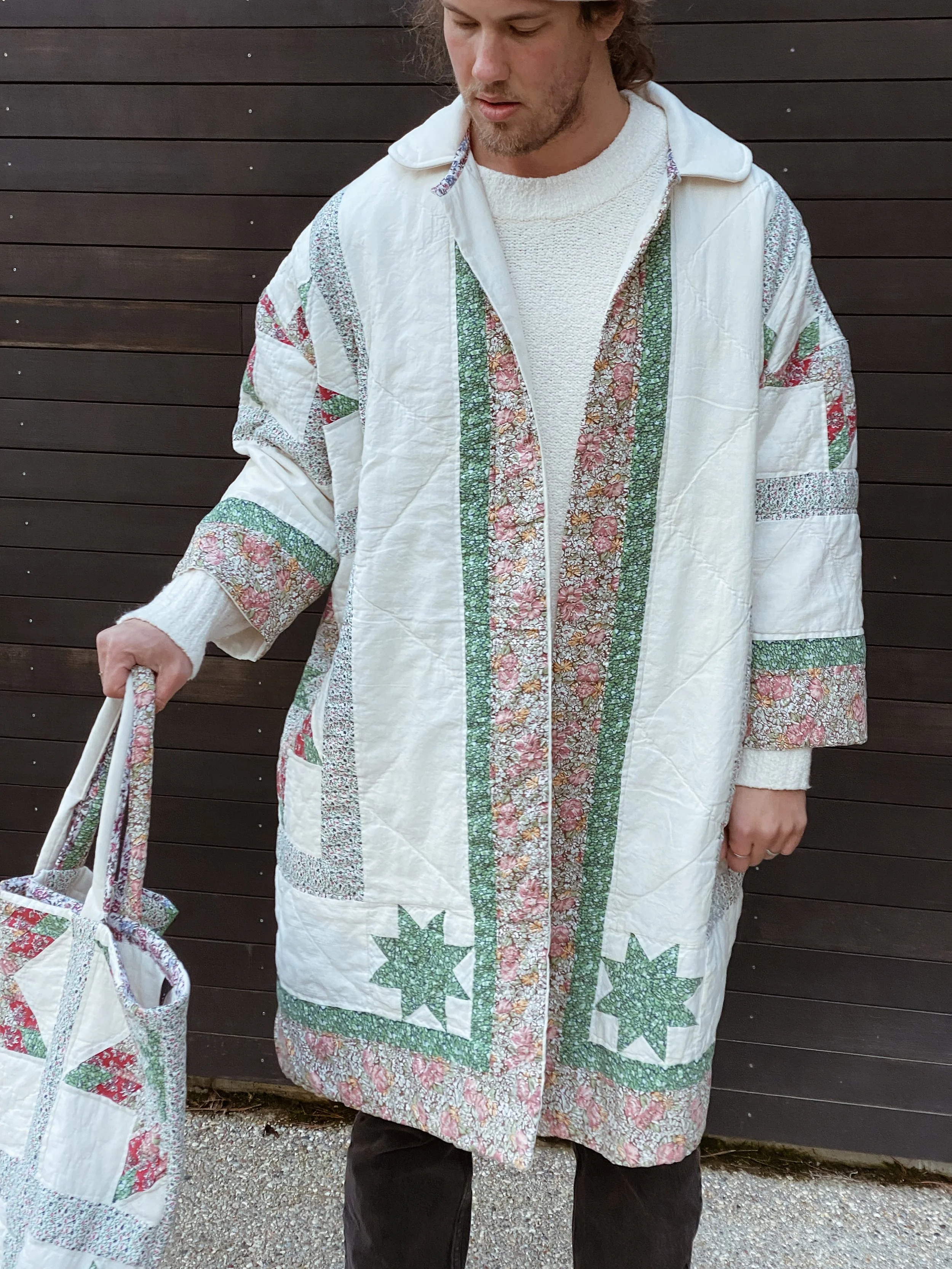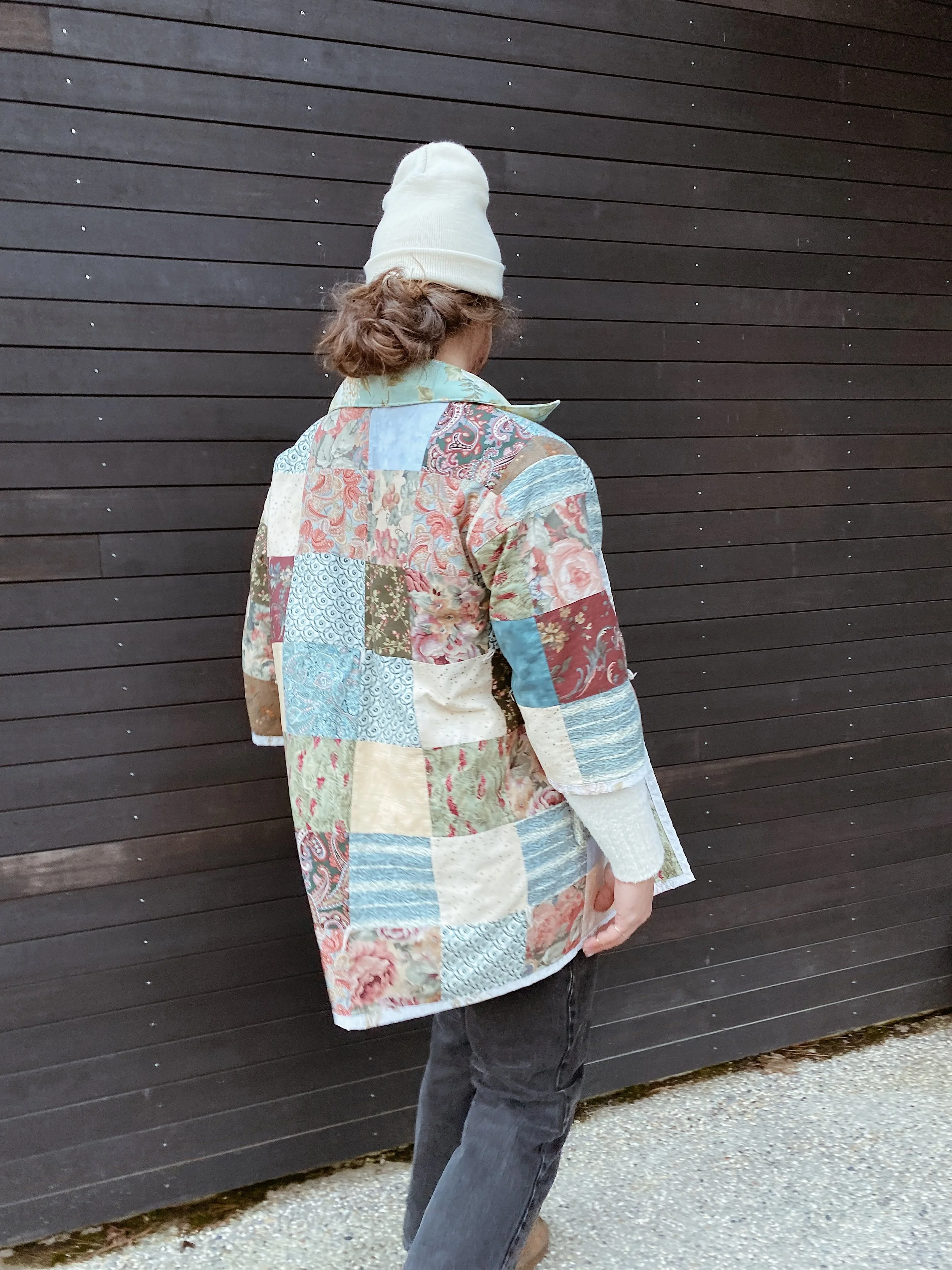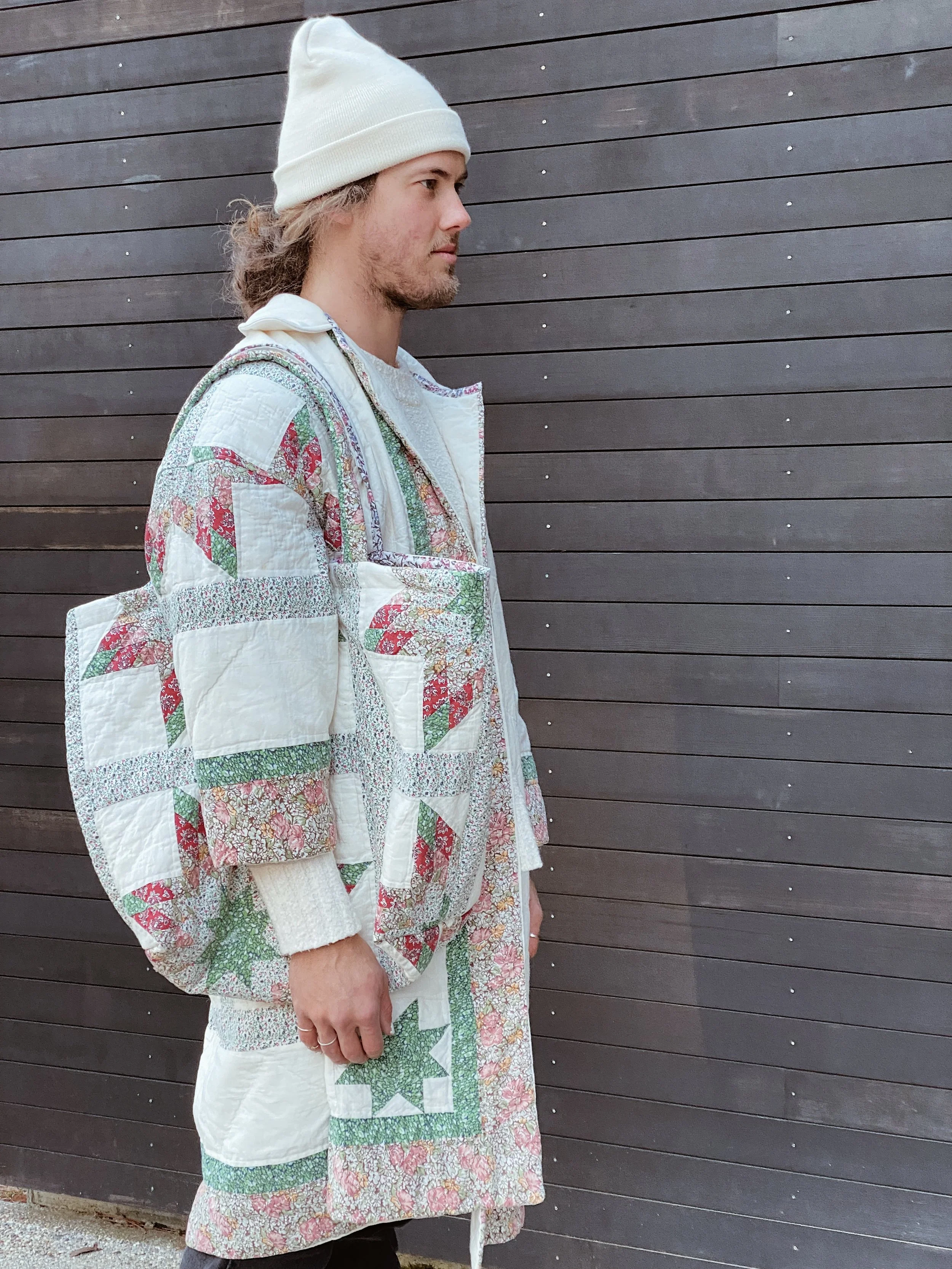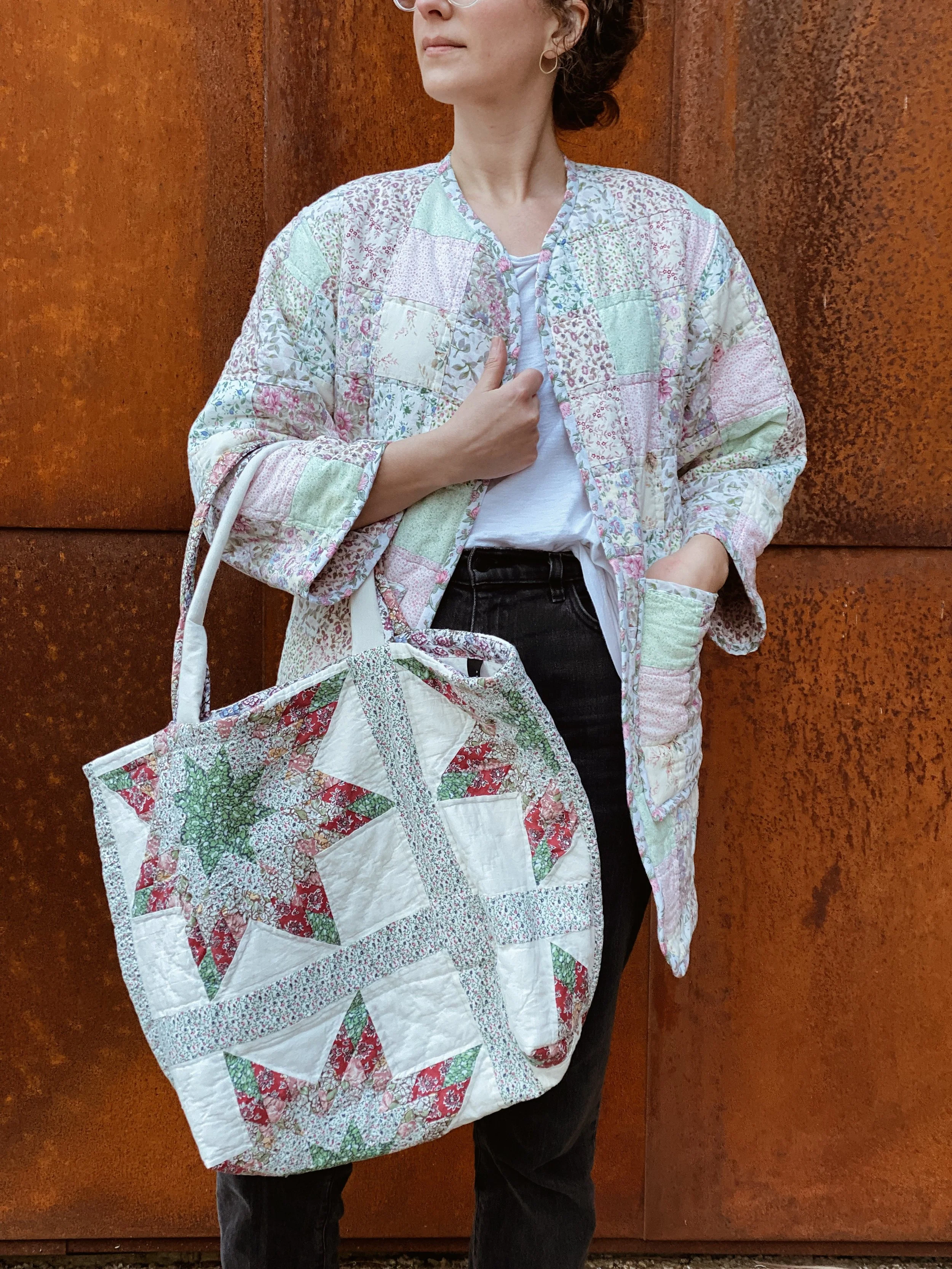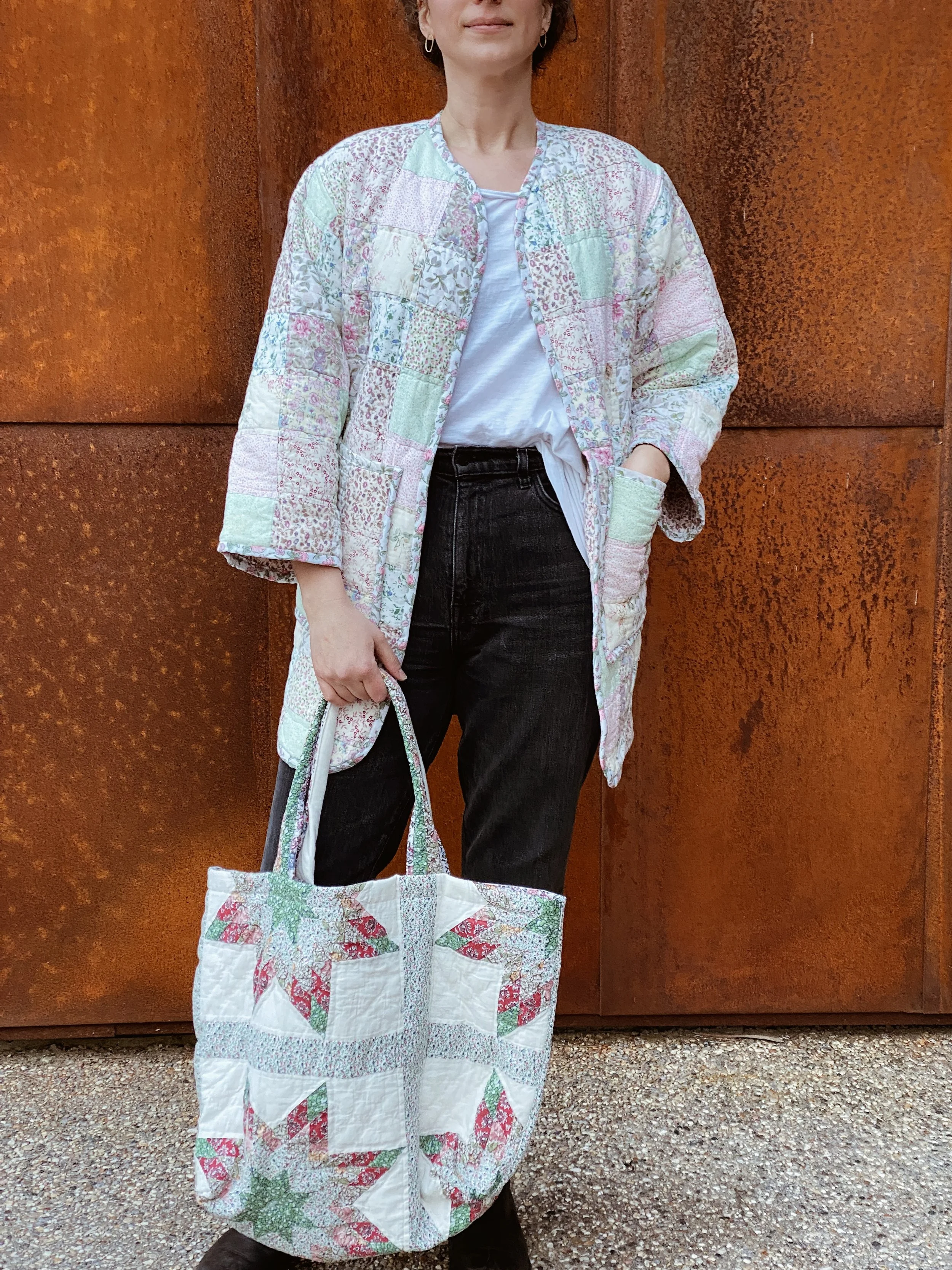 gezelligSS23 // OO5A HUG FOR YOUR BODY shop / comfort & community / coats that hug/ pre-loved quilts/ mended seams/ extended life