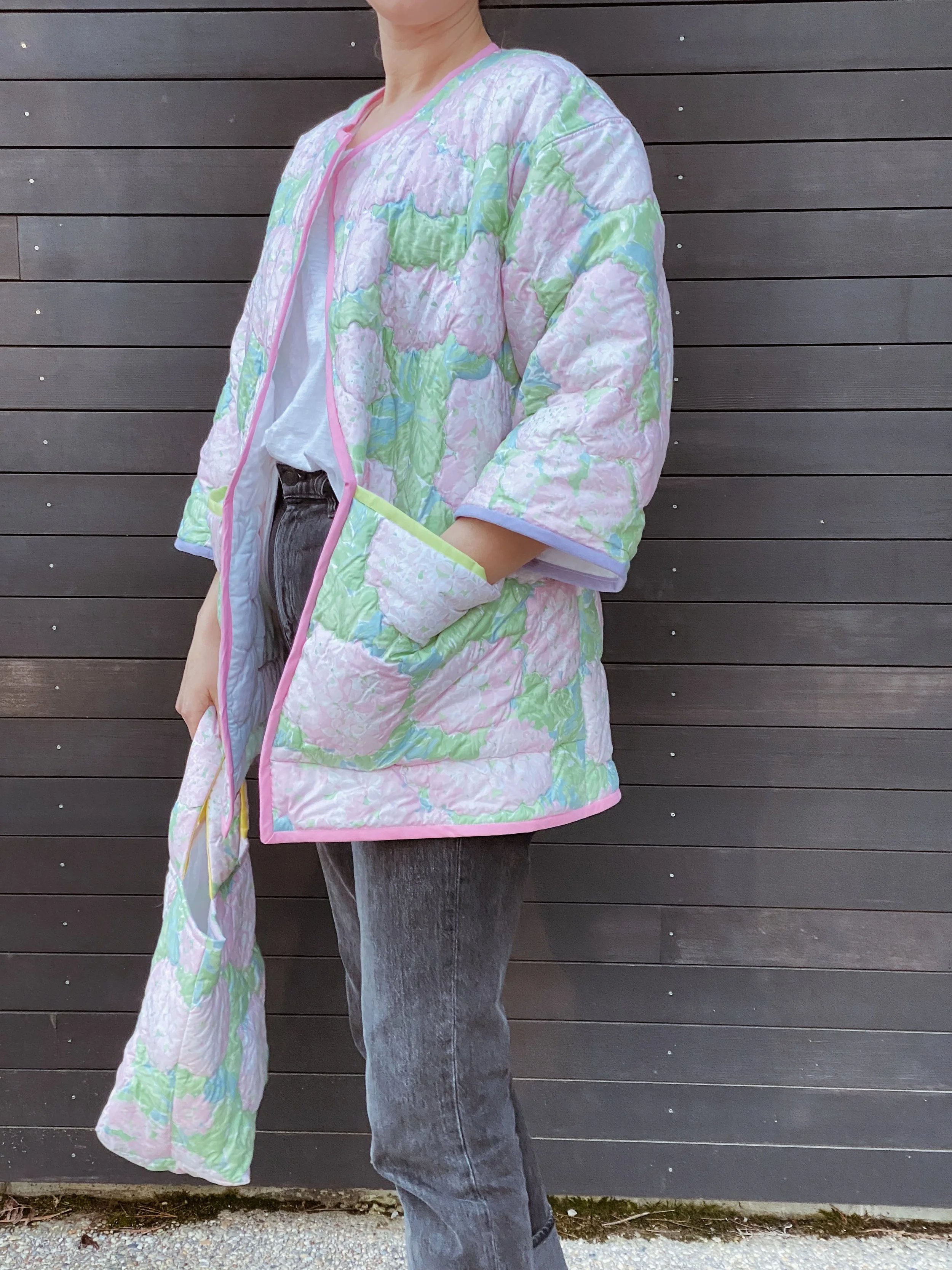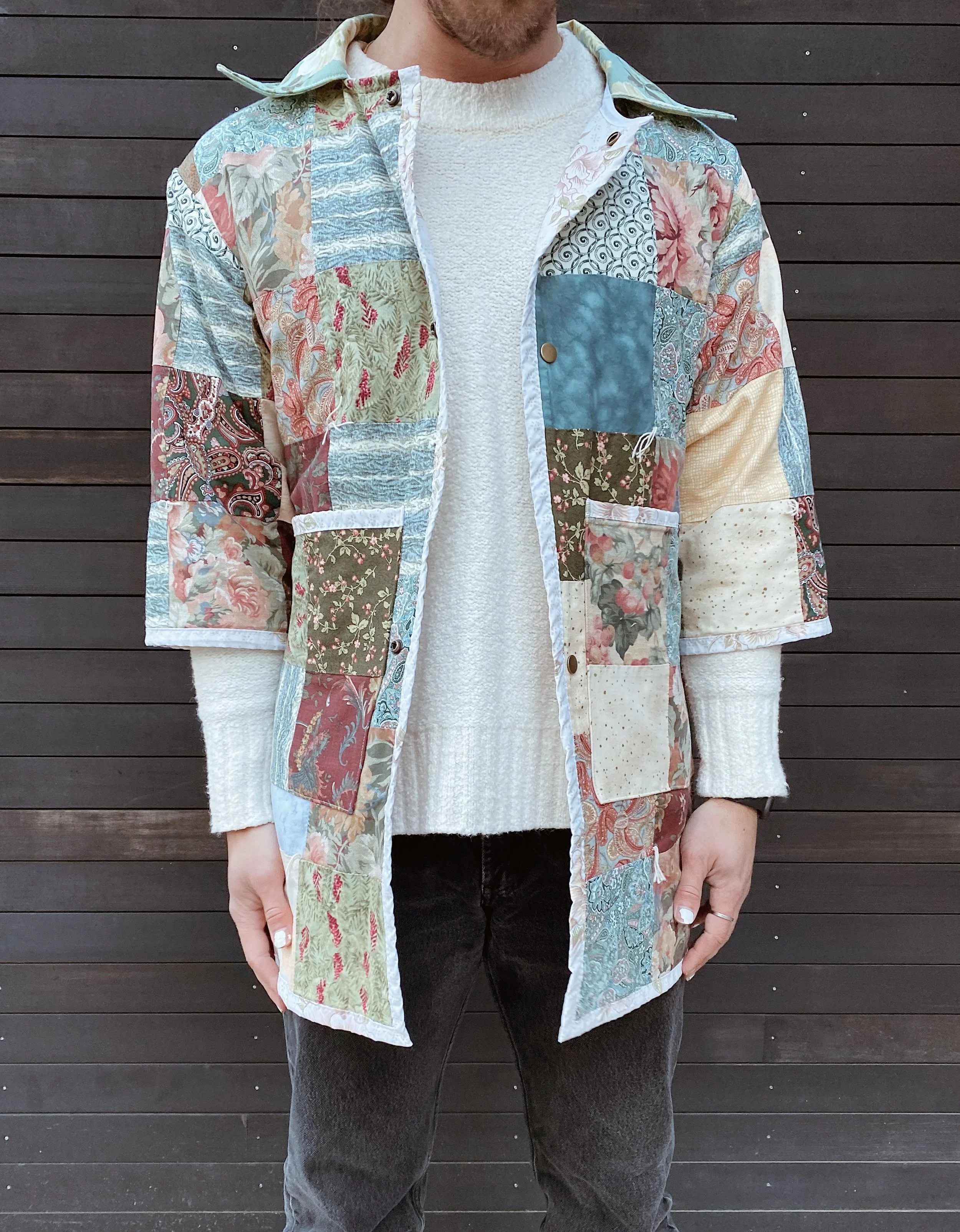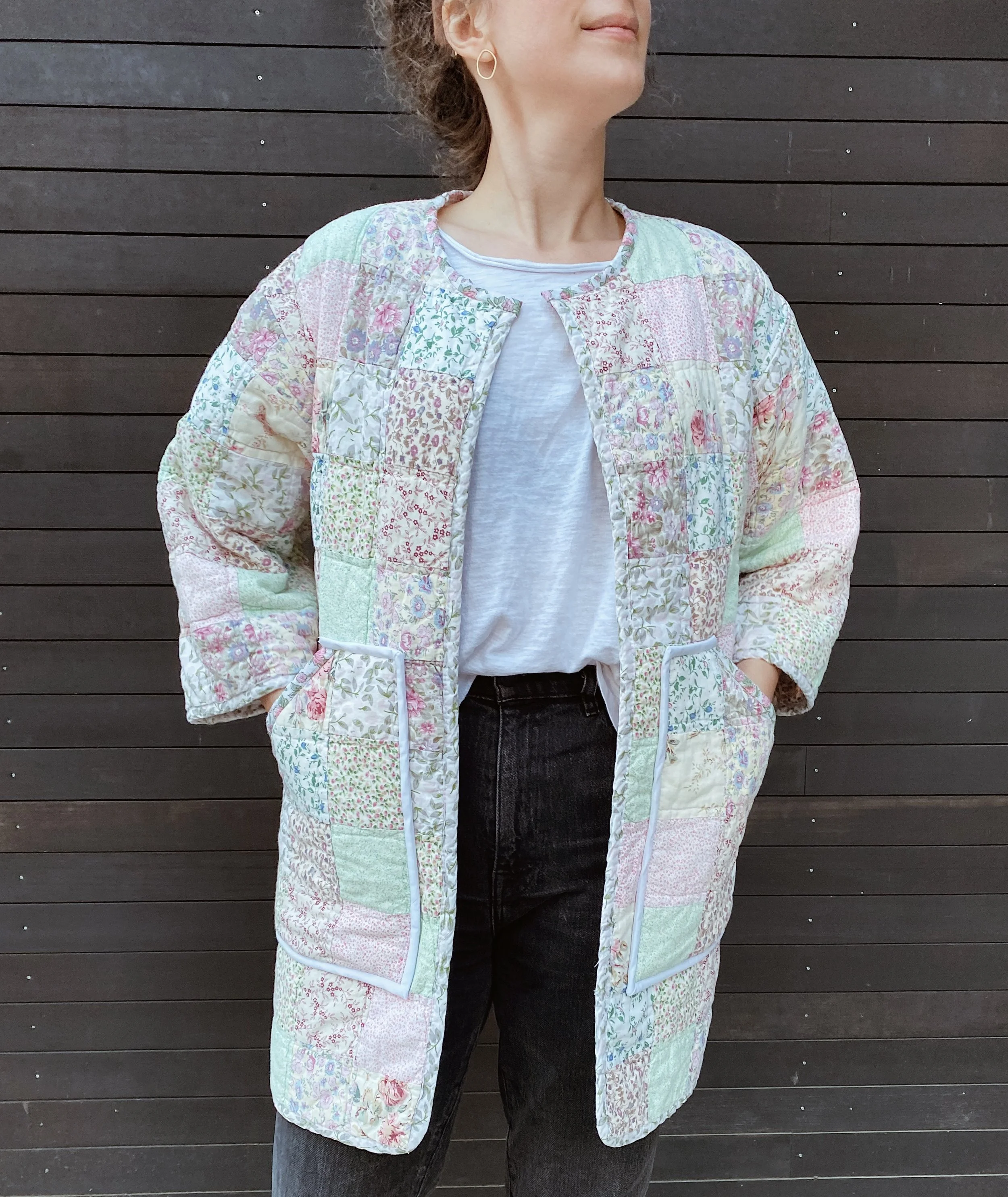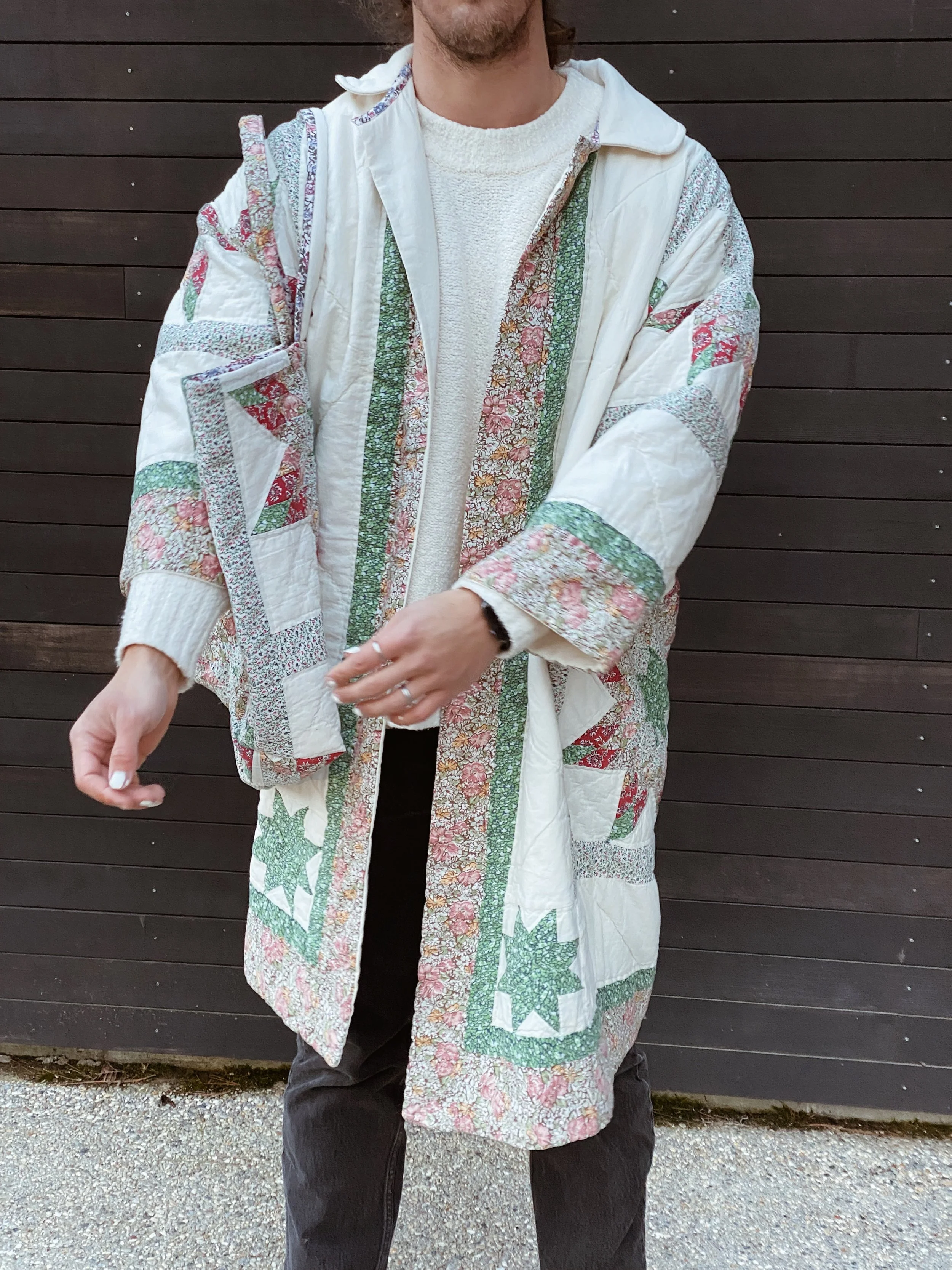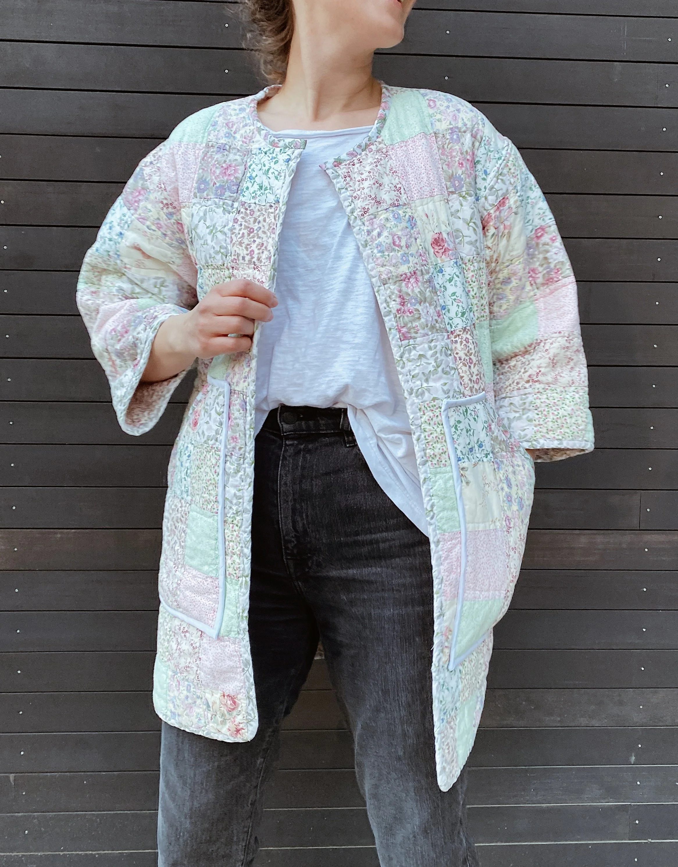 gezelligSS23 // OO5A HUG FOR YOUR BODY shop / comfort & community / coats that hug/ pre-loved quilts/ mended seams/ extended life