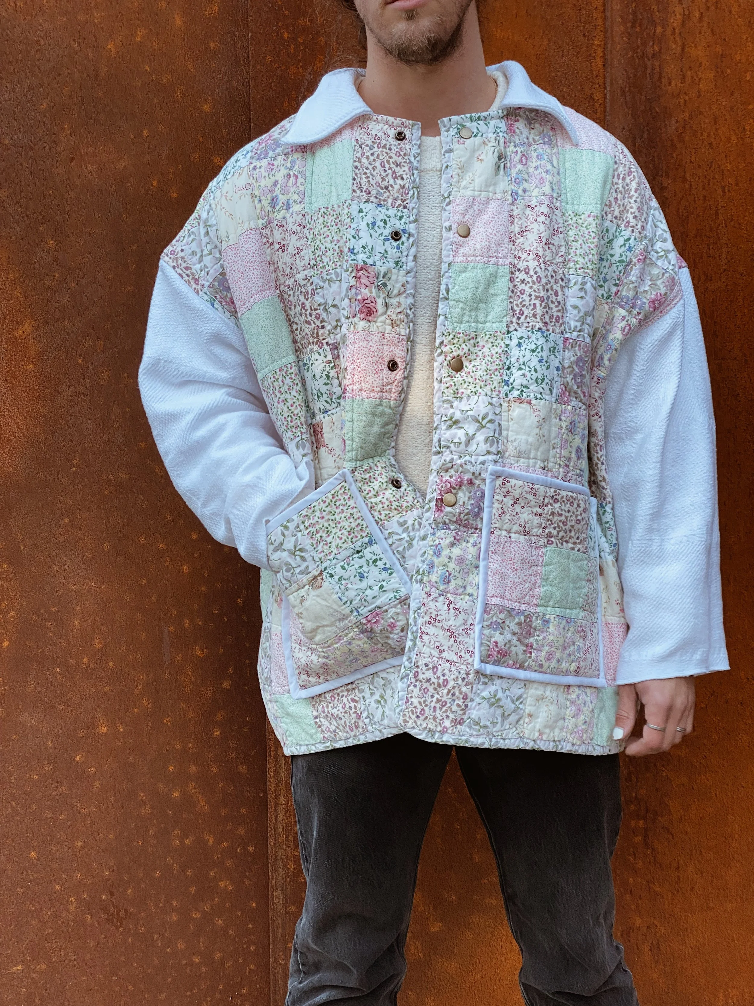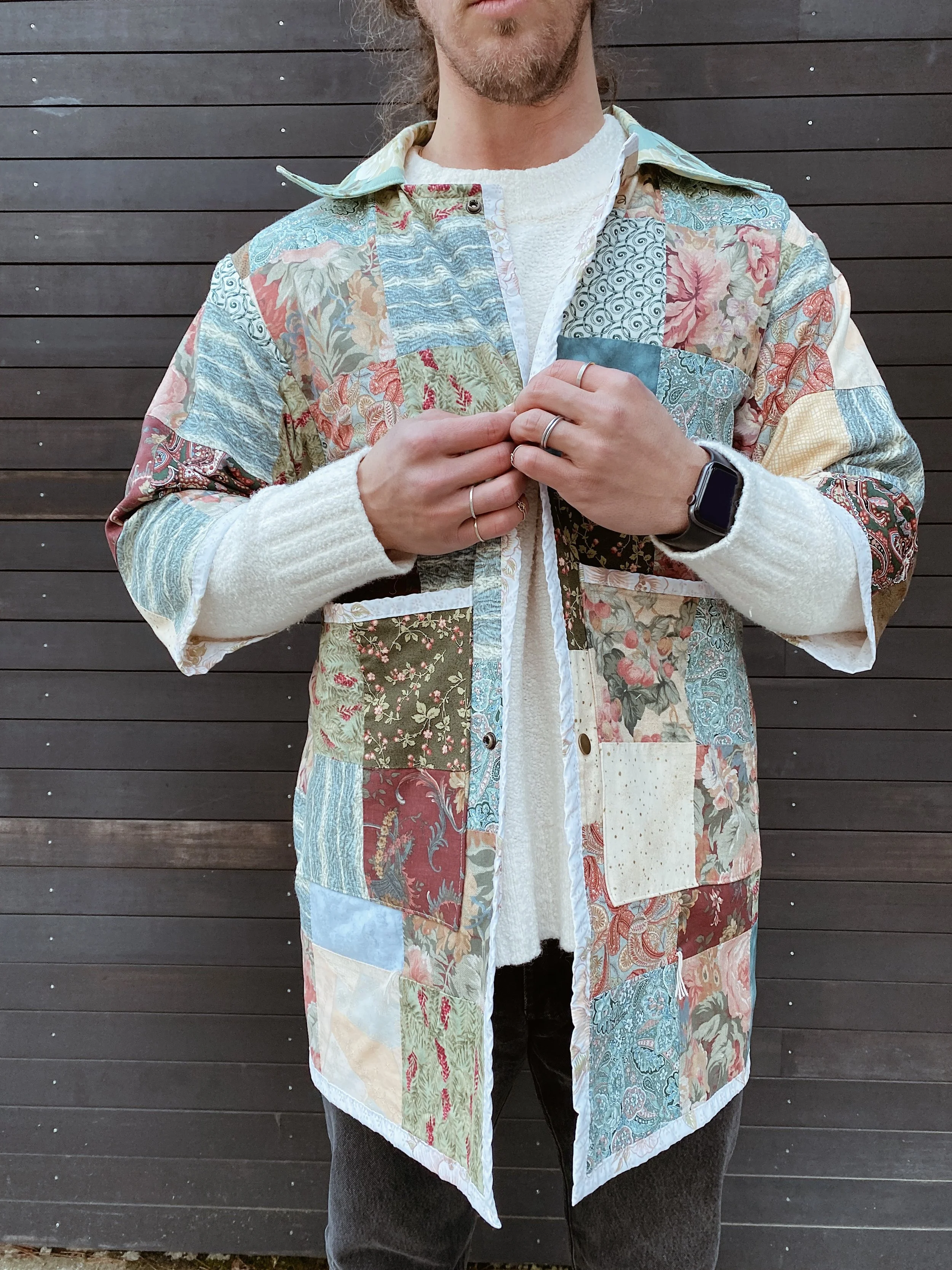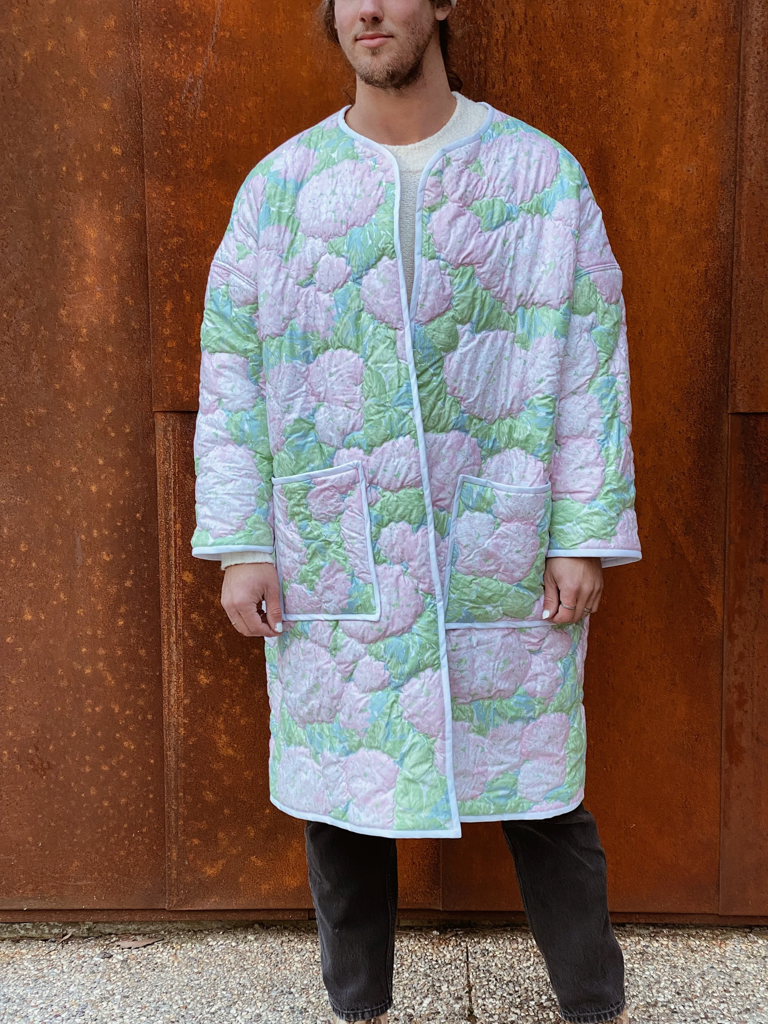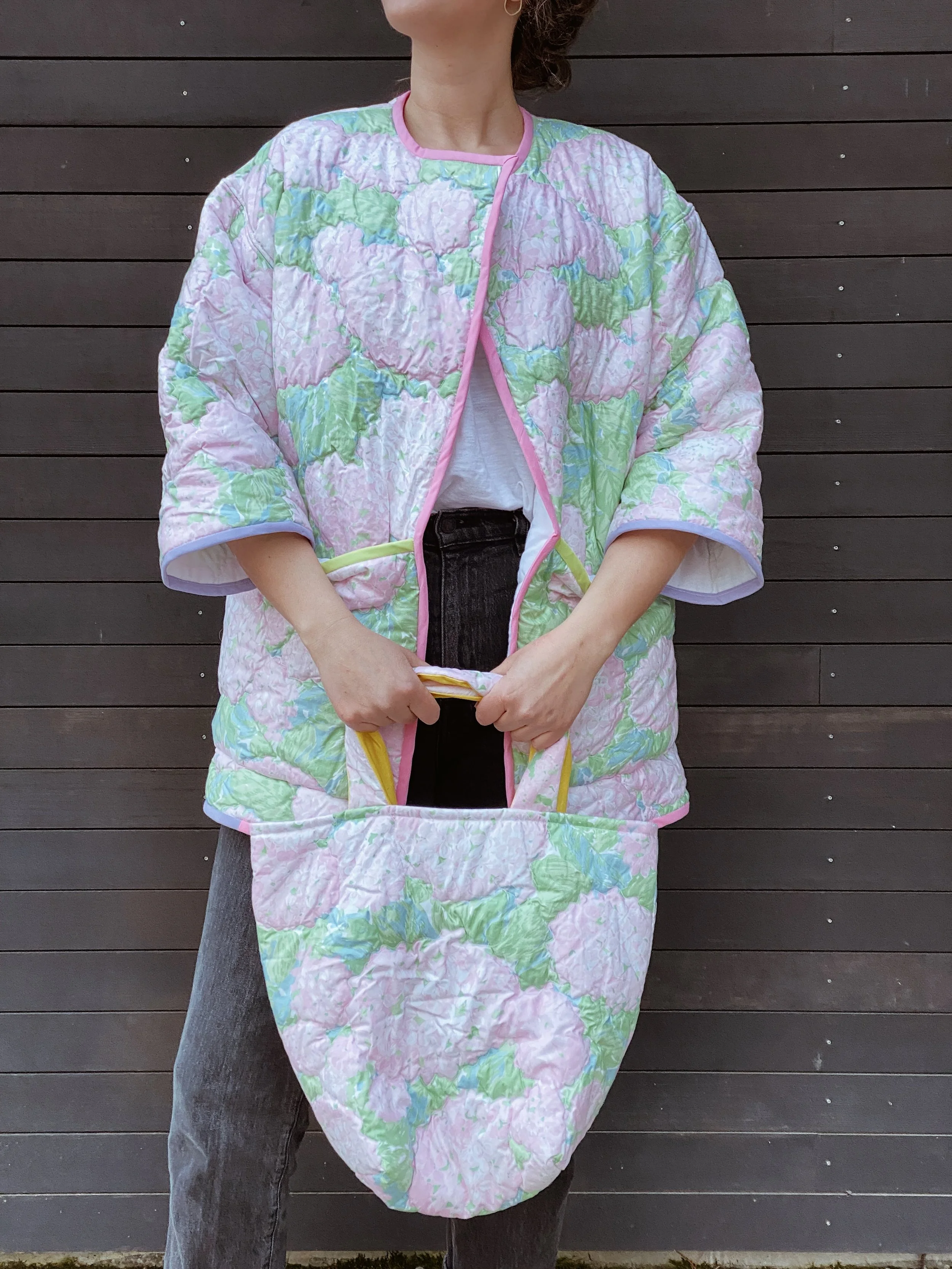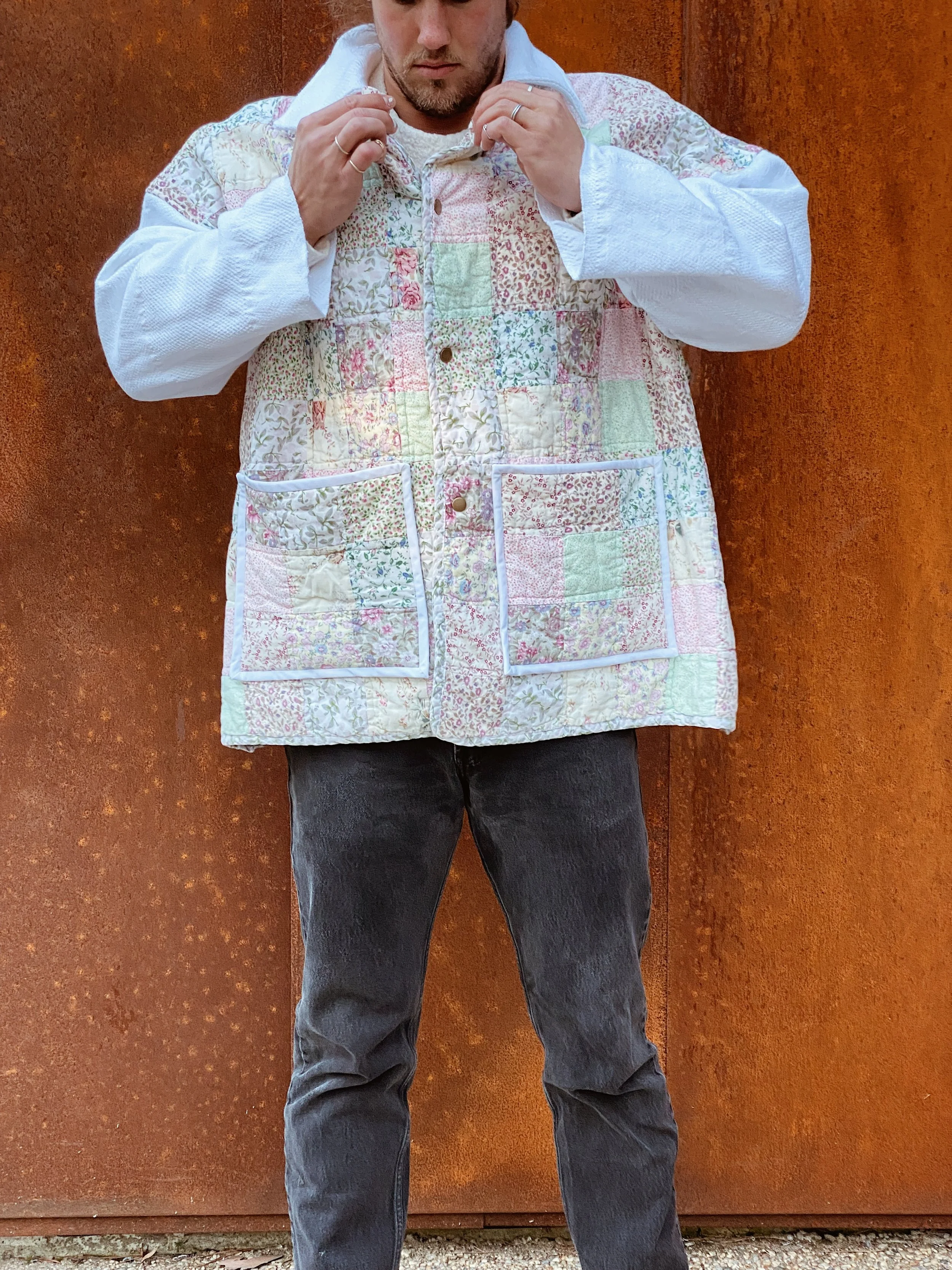 gezelligSS23 // OO5A HUG FOR YOUR BODY shop / comfort & community / coats that hug/ pre-loved quilts/ mended seams/ extended life