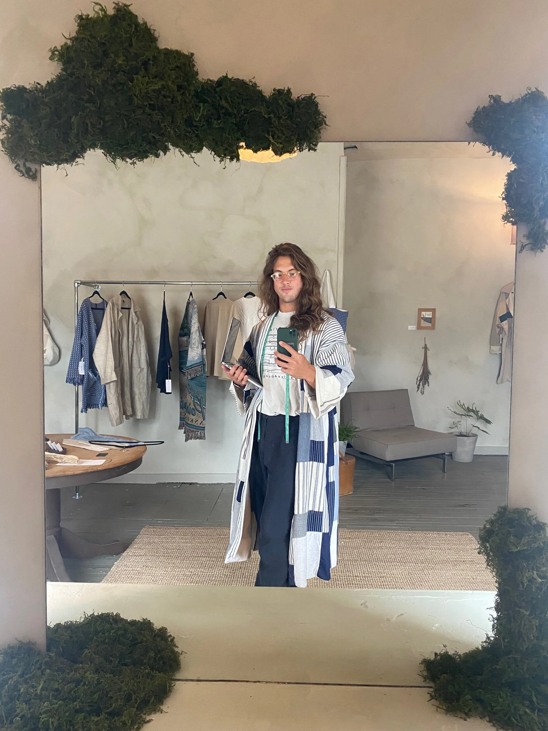 this piece is the epitome of nykamping: unique, one of a kind, quality finishes, gender neutral, one size fits most & created from pre-loved locally sourced textiles – it truly is a tent for your body