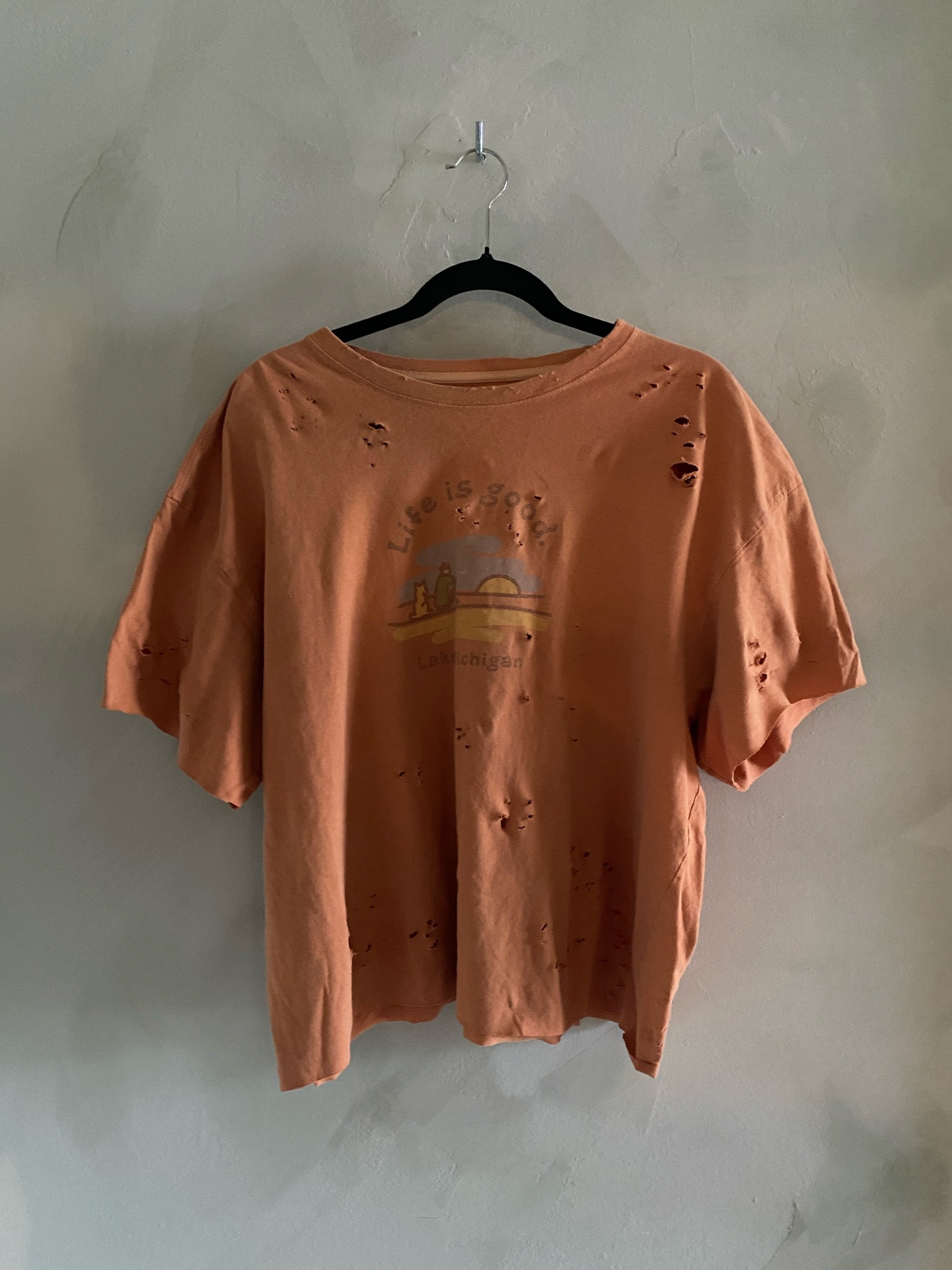 Lake Michigan Life is Good cotton tshirt in a muted orange